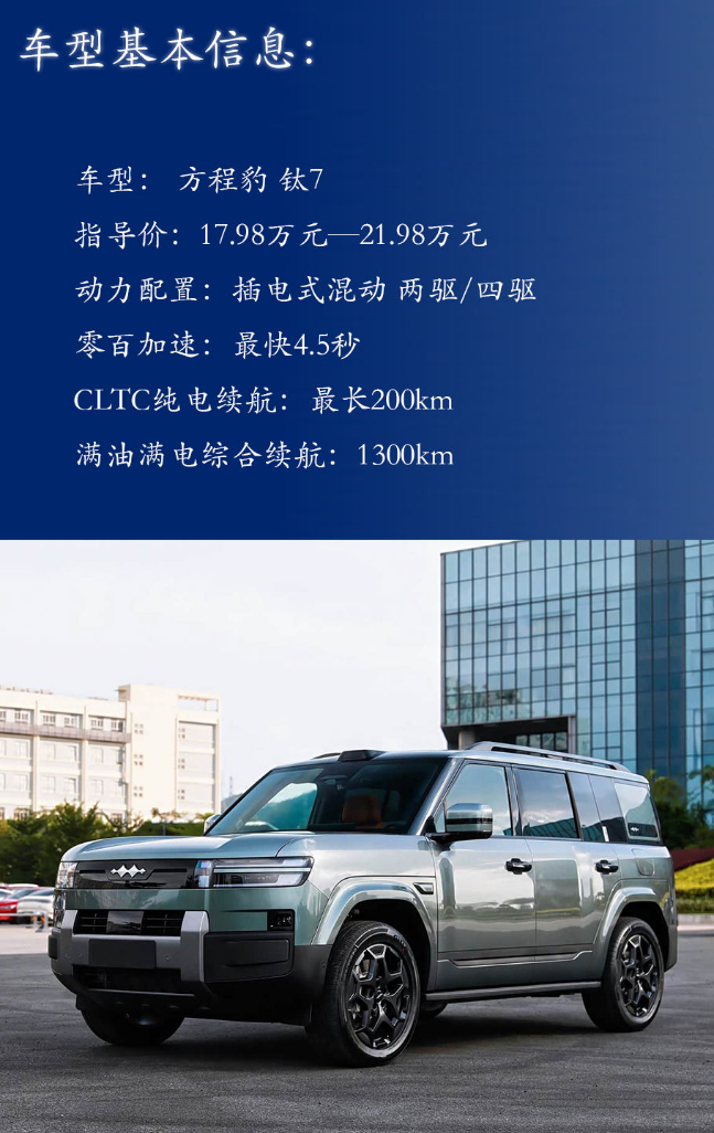 从专注越野的豹5到聚焦家用的钛7,方程豹品牌用不同的产品矩阵,满足了硬派与实用。如果说豹5长续航版是户外越野爱好者的从容之选,那么钛7则以“面子、里子、乐子”的满足。