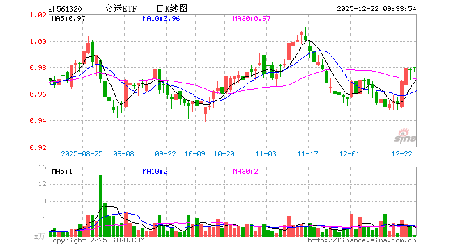 交运ETF(561320)开盘涨0.20%,重仓股京沪高铁跌0.19%,顺丰控股涨0.32%