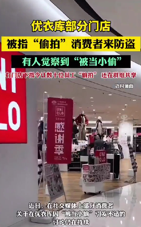 近日,优衣库部分门店被指“偷拍”消费者来防盗。