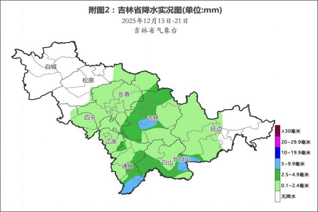 22日,白城、松原、长春、四平、辽源、吉林北部(吉林市区、舒兰、蛟河)、通化西部(梅河、柳河、通化县)有小雪。