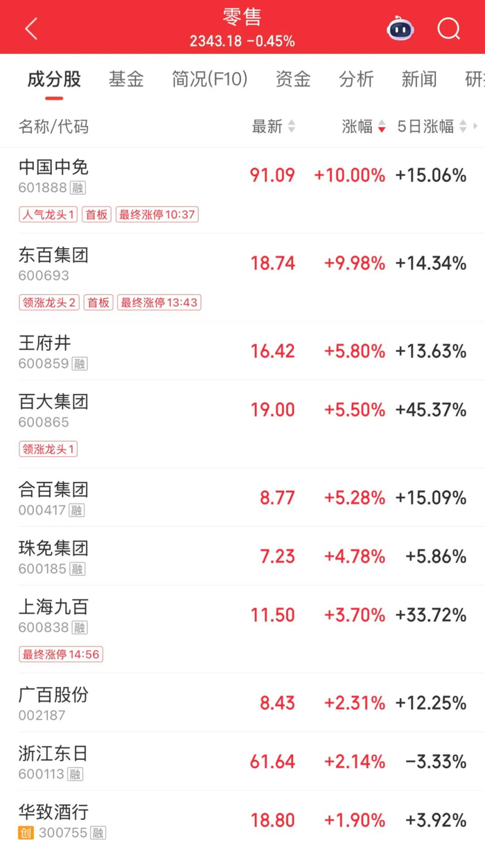 午后A股零售股局部回暖,东百集团涨停。港股新消费板块午后走强。