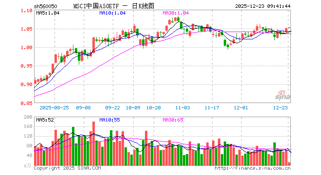 MSCI中国A50ETF(560050)业绩比较基准为MSCI中国A50互联互通人民币指数收益率,管理人为汇添富基金管理股份有限公司,基金经理为乐无穹、吴振翔,成立(2021-10-29)以来回报为5.08%,近一个月回报为4.60%。