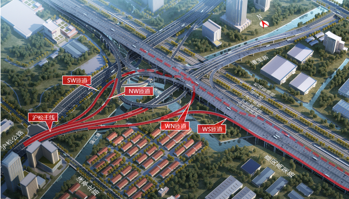 另外,为配合嘉松公路越江工程,衔接越江大桥的嘉松公路越江接线段新建工程已于近期开工建设。北段总长1.146公里,北起闵塔公路交叉口,南至金平路交叉口以北。南段总长1.608公里,北起于松金公路(北)交叉口以南,南至叶新公路。全线总体规模为双向六车道,道路两侧设置慢行道,可供人非通行。