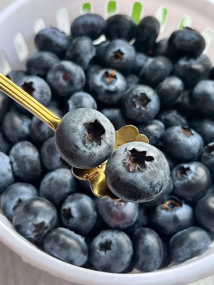 试试一把扔进嘴,蓝莓随着牙齿咀嚼,一颗颗炸开。嫩嫩的果肉和清脆的果籽混在一起,特别过瘾。