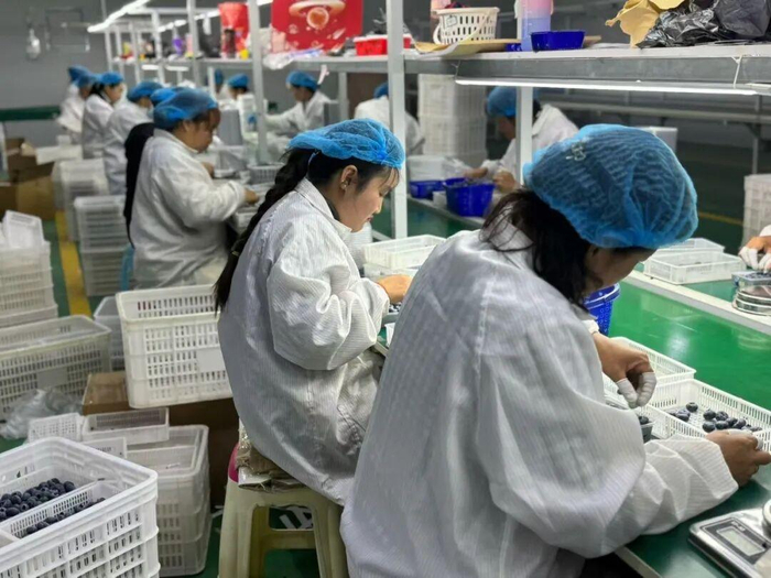 看蓝莓的样子就知道不好采摘(之所以国产蓝莓不多,和它皮薄易损,不好培育有莫大的关系。)整个采摘、挑选、包装过程,都要佩戴指套及手套。