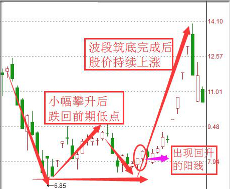 当一只股票处在波段的底部的时候,如果出现从起涨点至高点再回落至前期起涨点附近,K线组合图形就像是一扇“大门”,此时,若出现回升的阳线,可考虑跟进。