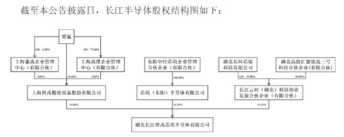 其股东包括:上海世禹精密设备股份有限公司(以下简称上海世禹)持股33.4%,芯玑(东阳)半导体有限公司(以下简称芯玑半导体)持股33.3%,长江云河(湖北)科技创业发展合伙企业(有限合伙)(以下简称长江云河)持股33.3%。