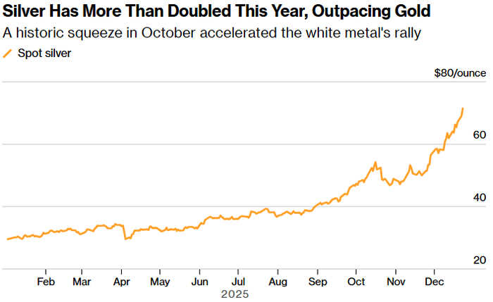 在供应有限的背景下,工业需求(尤其是太阳能和电动汽车的需求)进一步推动了白银价格上涨。避险需求以及供需基本平衡不仅支撑了白银的增长。铜价也上涨了约37%,凸显了2025年更广泛的趋势:市场青睐那些有实际需求支撑的资产。