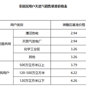 根据《关于本市非居民天然气用户上下游价格联动机制的通知》(沪发改规范〔2022〕10号)相关规定,结合本市天然气上游气源价格变动情况,决定调整非居民用户天然气销售基准价格。调整后的价格见下表: