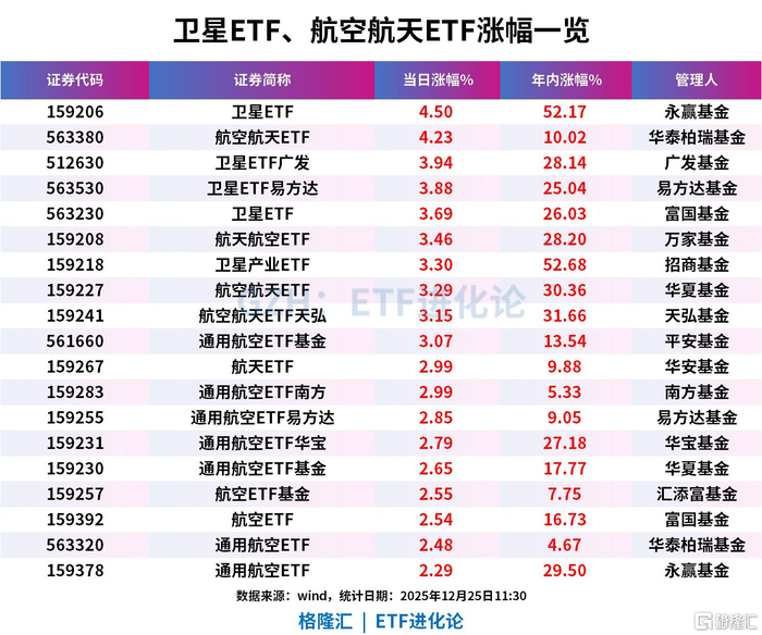 商业航天板块大爆发!卫星ETF、航空航天ETF涨超4%