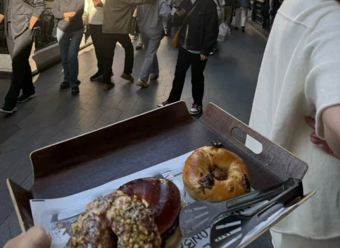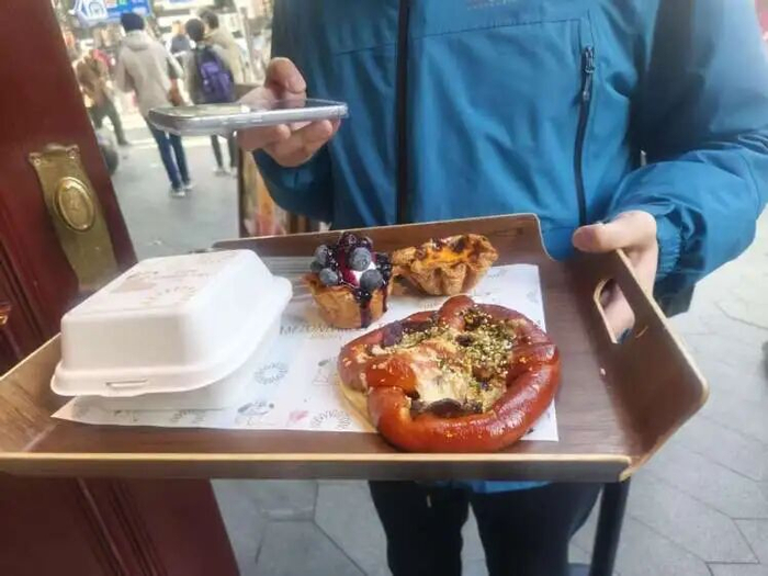 “这家店的风格是复古英伦风,敞开堆放的面包会有种旧日集市的热闹感,拍照也更好看,但对于卫生来说就不咋地了,之前人超级多的时候,我眼看着有顾客的袖口衣摆就擦在面包上。”朴小姐表示。
