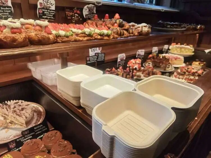 将仍敞开放置的蛋糕也放入柜中,难度应该不大;端着面包在户外排队的情况亦可想方法改善,是否有可能将店内动线更改得更为流畅,留出室内排队的区域?若实在无法挤出空间,将面包托盘变成有盖的盒式能否实现?