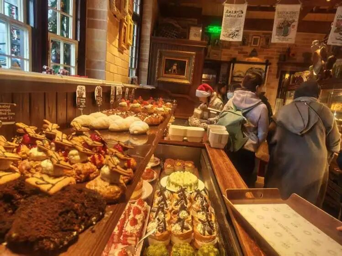 不过,时至今日,面包一侧已经从临时小罩子变成了整排的大玻璃柜,但另一侧的蛋糕都还是大开大敞着,只有顾客选购后才会被店员装入小盒子。