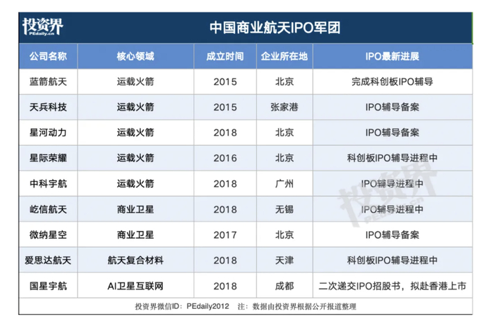 如果将范围放大至整个商业航天领域,屹信航天、微纳星空、爱思达航天、国星宇航等商业卫星、航天复合材料相关企业,均在今年冲击资本市场。没有人甘愿落后。
