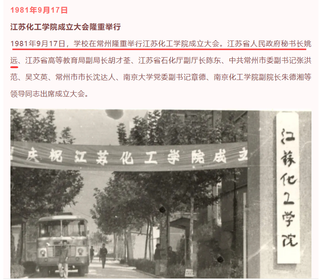 查询资料可以看到,江苏之前确实有一位叫姚远的省政府秘书长。在常州大学的官网上有这么一段史料,1981年9月17日,学校在常州隆重举行江苏化工学院成立大会,江苏省人民政府秘书长姚远等领导出席。