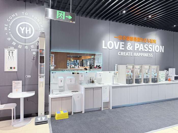 细节呵护显温度:调味品货架配备放大镜,连卷袋旁放置湿手器,果切标明食用顺序,商品提供隔离袋……种种细微改变,只为更舒心的体验。