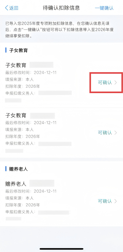 3.如您需要对2026年度专项附加扣除信息进行修改、删除操作,点击“可确认”进行相关操作。