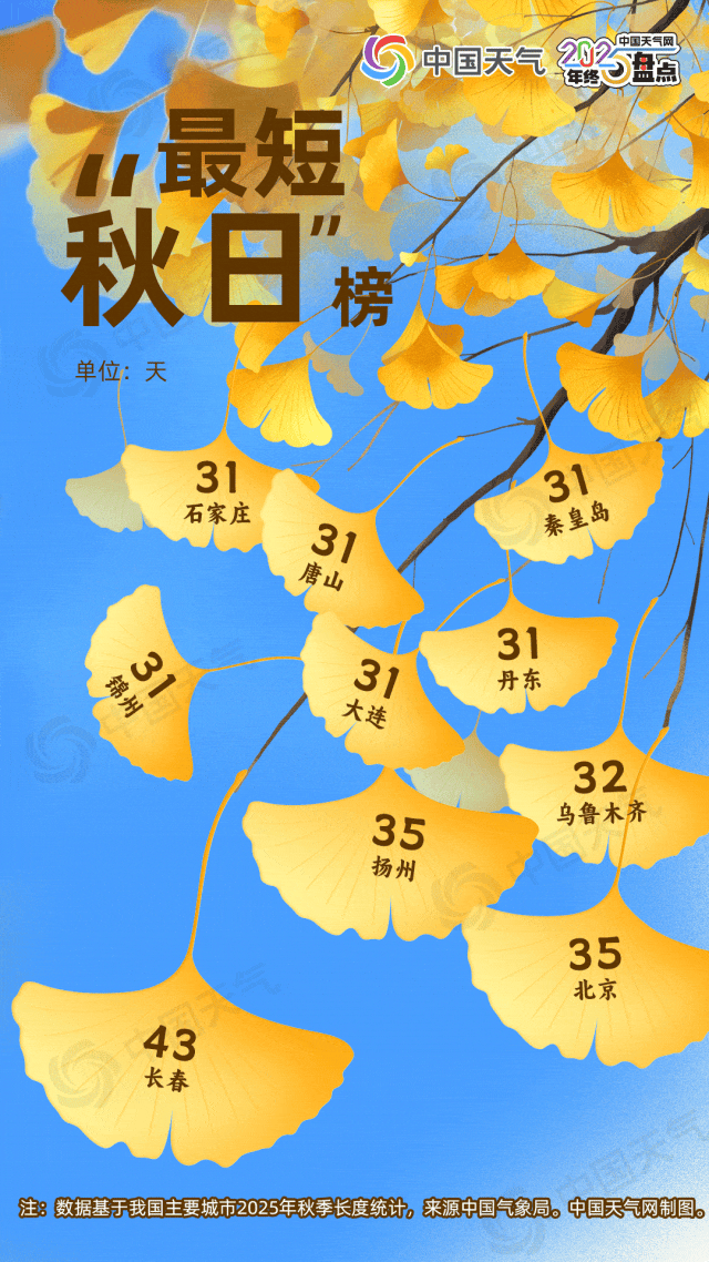 2025岁尾将至,回望这一年,我们共同经历了诸多令人难忘的天气记忆:台风“桦加沙”三登华南,华北雨季和华西秋雨接连破纪录,观测史上最热夏季再现,在最长夏日与最短秋日的交错中体会“春夏咻冬”的变奏……其中,哪个天气瞬间最让你记忆深刻?中国天气网盘点全年天气大数据,重磅推出2025年度城市天气“最”榜单,其中,长春上榜【最短“秋日”榜】和【最畅快“玩雪”城市榜】,它们各有独特的魅力,共同构成了长春独特的天气印记。
