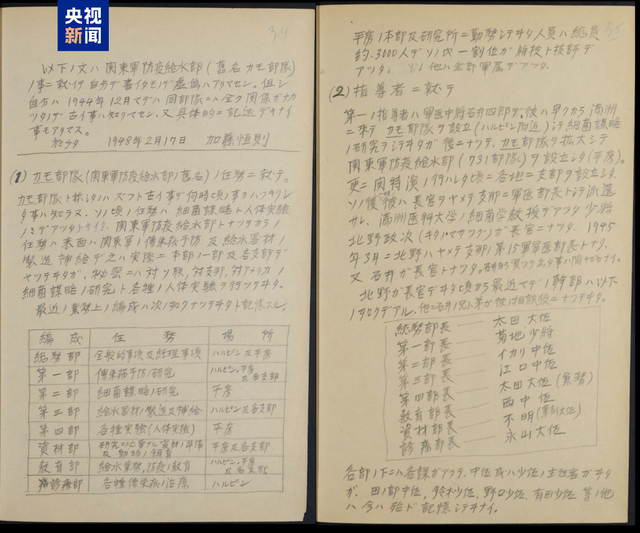近日,侵华日军第七三一部队罪证陈列馆公布一份题为《731部队海拉尔支部部队长加藤恒则笔供》的史料。该史料原件藏于俄罗斯联邦安全局外贝加尔边疆区分局,由普希金科学图书馆申请解密获取后,于今年2月将影印版捐赠到黑龙江哈尔滨侵华日军第七三一部队罪证陈列馆,主要记载了加藤恒则1948年2月被苏联逮捕后亲笔书写的供述材料,包含被捕者档案、个人信息登记表及详细罪行陈述三部分内容,由俄文和日文材料组成,日文是亲笔笔供,俄文是翻译稿。