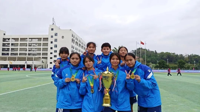 湛江市爱周高级中学女子足球队勇夺2023年广东省青少年校园足球联赛总决赛暨第二届中国青少年足球联赛高中年龄段U17-18女子高中组冠军。图源湛江市爱周高级中学