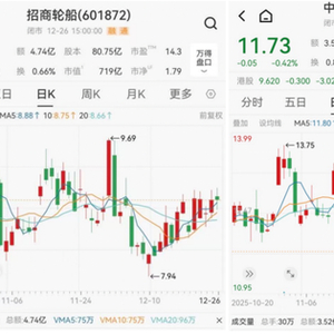 在国内资本市场上,国内大型原油油轮龙头企业招商轮船(601872.SH)、中远海能(600026.SH)等却逆势坚挺。截至12月26日当周,招商轮船周涨幅达到4%以上,为近一个月以来录得的最佳周线表现。