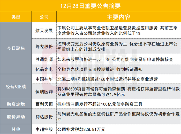 神剑股份(002361.SZ)发布异动公告,公司股票价格于2025年12月25日、26日连续2个交易日收盘价格涨幅偏离值累计超过20%,属于股票交易异常波动的情况。经核实,公司前期披露的信息不存在需要更正、补充之处,近期无公共媒体报道可能影响公司股价的信息,公司经营情况及内外部经营环境未发生重大变化。公司控股股东及实际控制人在股票交易异常波动期间不存在应披露而未披露的重大事项,亦不存在买卖公司股票的情形。公司不存在违反信息公平披露的情形。