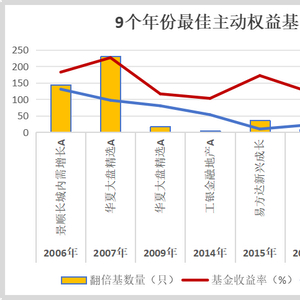 复盘2006年至9个A股大行情年份(2006年、2007年、2009年、2014年、2015年、2019年、2020年、2021年、2025年),主动权益基金都有过出色表现,除2007年和2025年出现过收益率超200%的翻倍基外,景顺长城内需增长A2006年和易方达新兴成长2015年的收益率,分别在180%和170%以上。农银汇理工业4.0在2020年取得收益率则超过160%。