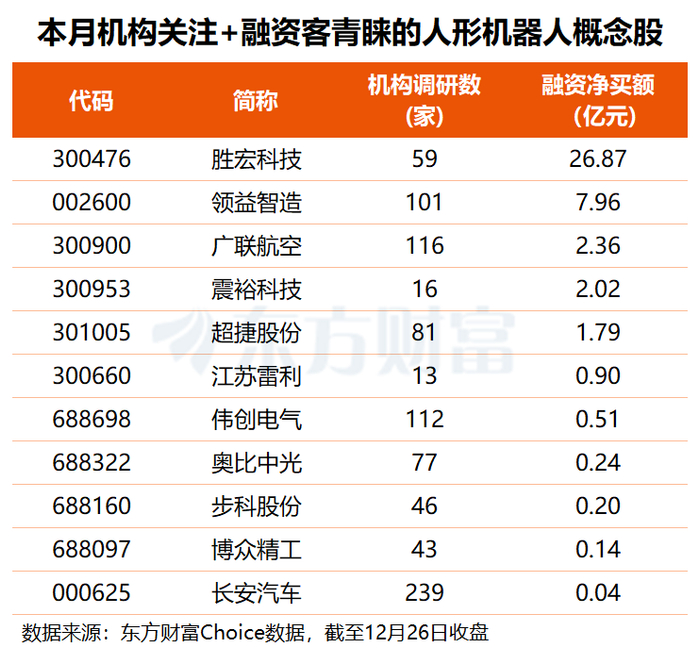 人形机器人再迎利好!这两股本月股价翻倍 机构+融资客高度关注这些票