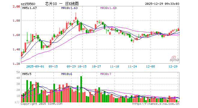 12月29日,芯片ETF景顺(159560)开盘涨0.00%,报1.661元。芯片ETF景顺(159560)重仓股方面,中芯国际开盘涨0.74%,寒武纪涨0.47%,海光信息跌0.33%,北方华创涨0.30%,澜起科技涨0.00%,兆易创新跌0.56%,豪威集团涨0.00%,芯原股份涨1.64%,长电科技涨0.03%。