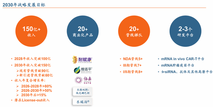 未来5年,云顶新耀还计划在核心平台mRNA in vivo CAR-T和mRNA肿瘤疫苗平台基础上,扩展至其他高潜力平台,引进1到2个其他技术平台,如开发慢病药物的小干扰核酸平台和抗体平台等,储备更多创新品种,以实现2030战略规划中的“BD合作+自主研发”双轮驱动策略。
