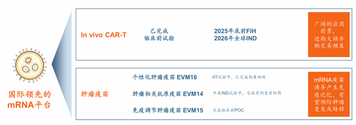 强大的商业化平台能力为云顶新耀的自研品种提前做好了铺垫。公司的自研mRNA in vivo CAR-T平台和mRNA肿瘤疫苗平台正在稳定推进之中。