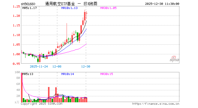 通用航空ETF基金(561660)业绩比较基准为中证通用航空主题指数收益率,管理人为平安基金管理有限公司,基金经理为刘洁倩、马浩然,成立(2025-10-29)以来回报为19.63%,近一个月回报为20.29%。