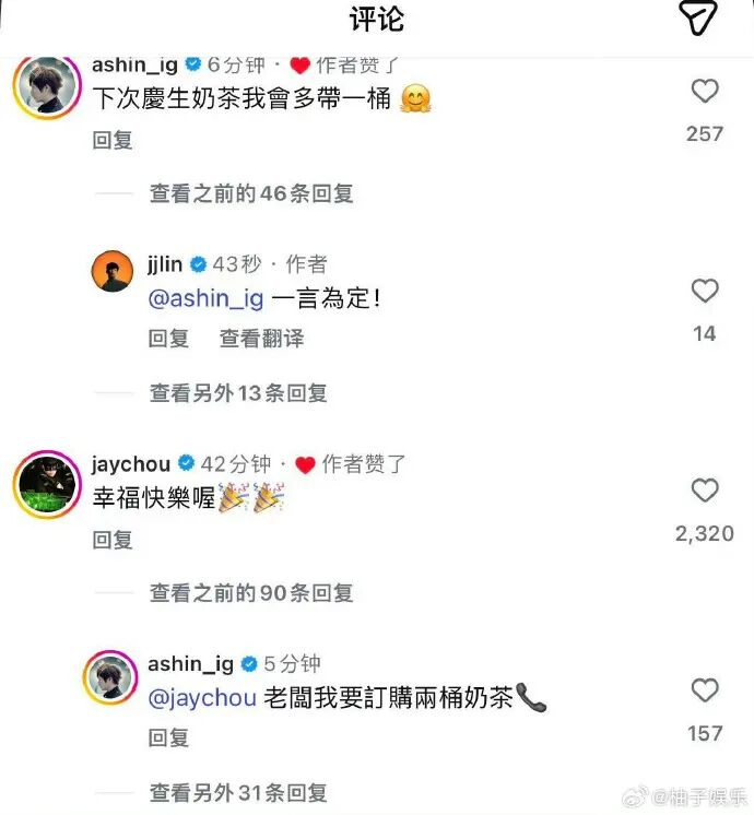 周杰伦、阿信、林志颖等明星,纷纷祝福林俊杰恋情,网友:奶茶三兄弟聚齐了。