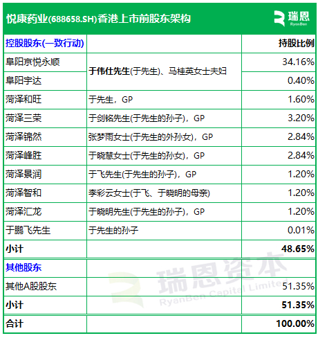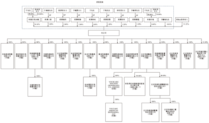 根据招股书披露,悦康药业在香港上市前的股权架构中,