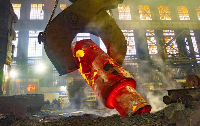 2025年2月10日,位于黑龙江齐齐哈尔的中国一重水压机锻造厂,300吨级的大型电站转子钢锭被吊运至水压机进行锻造工序。中国一重集团坚持创新引领,着力建好建强重型装备生产制造基地,转型发展取得明显成效。