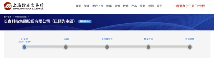 《科创板日报》记者注意到,在12月30日长鑫科技申报获受理同日,上交所网站同步披露两轮审核问询回复。