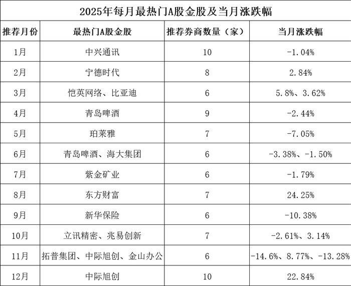2025年已临近收官,券商金股也在波澜壮阔的行情中交出亮眼“成绩单”。