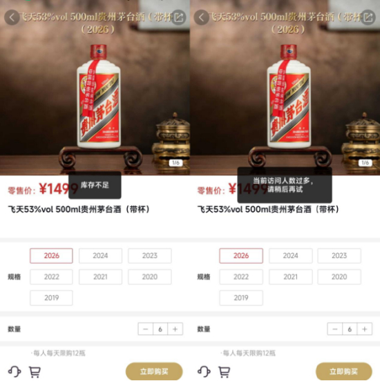 《BUG》栏目注意到,今日9:00开售后,多次投放产品很快热卖售罄。中国酒业独立评论人肖竹青在与《BUG》栏目沟通中同样指出,“i茅台发售平价500ml飞天茅台热卖,说明了茅台酒还是存在着广泛的刚需,茅台酒价格回归也扩大了饮用人群和饮用场景。”