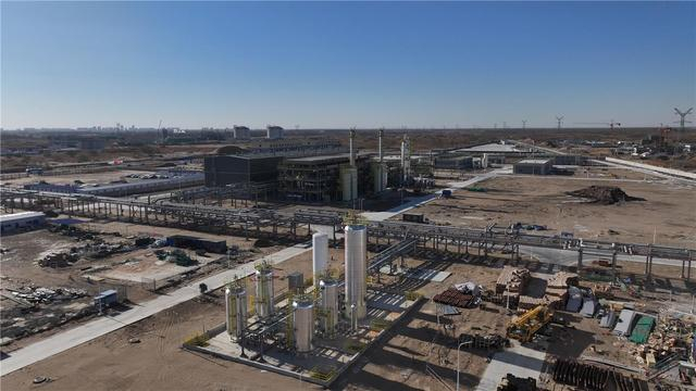 1月1日,在通辽市科左后旗巨融(通辽)能源有限公司120万吨/年液化天然气及配套设施项目现场,大型机械正在吊装设备。