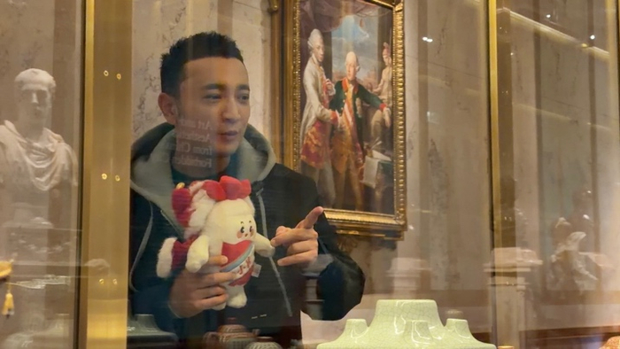 下午摄制组来到维也纳艺术史博物馆,参观并报道由故宫博物院维也纳艺术史博物馆联合策划的特展。值得一提的是,这是故宫博物院的文物首次赴奥展出。看,“小茅”仿佛在认真聆听这份跨越时空的文化交流。