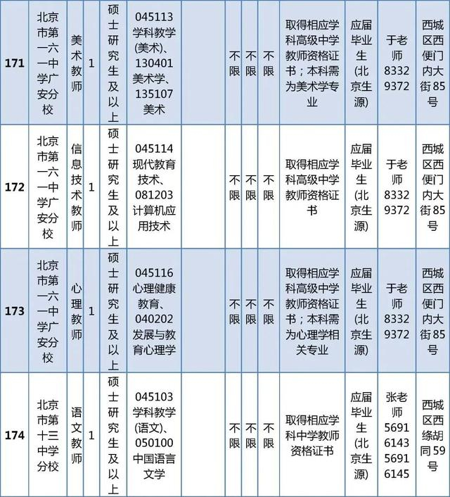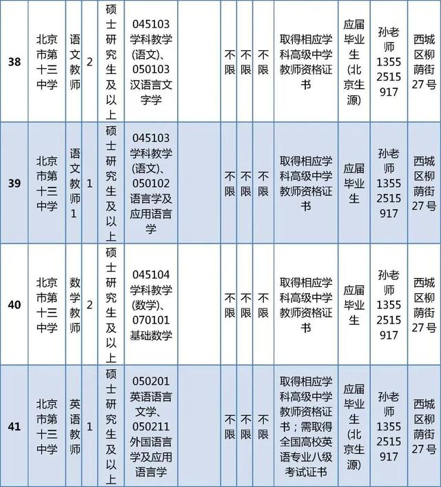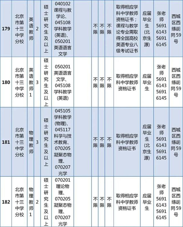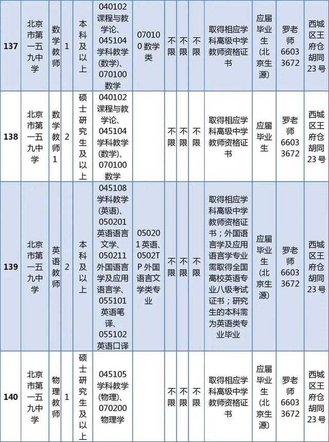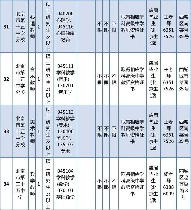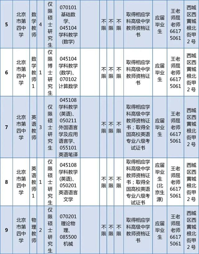 所有岗位具体报名条件详见《西城区教委所属事业单位公开招聘工作人员职位及要求表》(以下简称《职位及要求表》)。