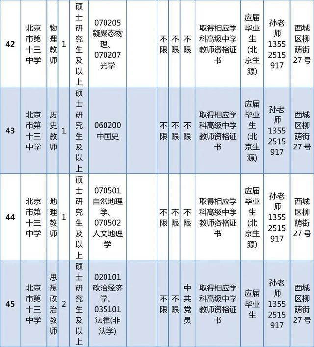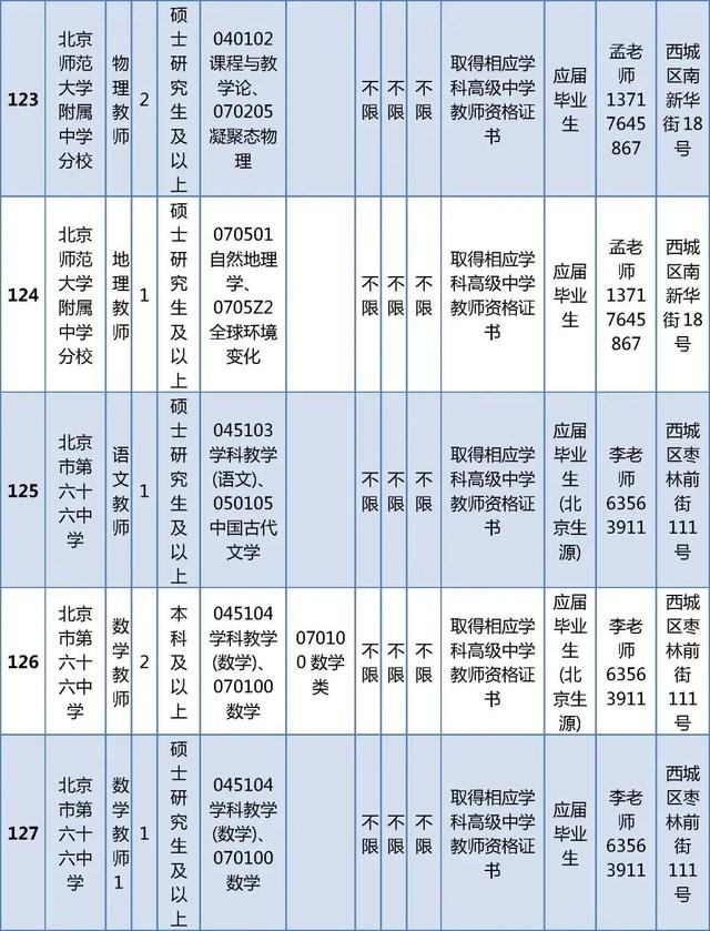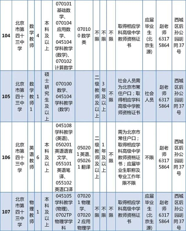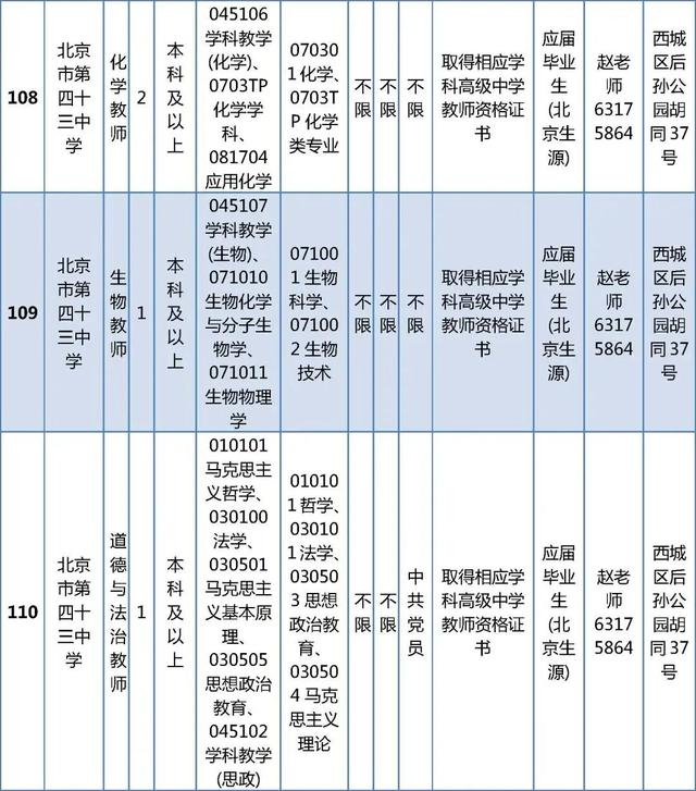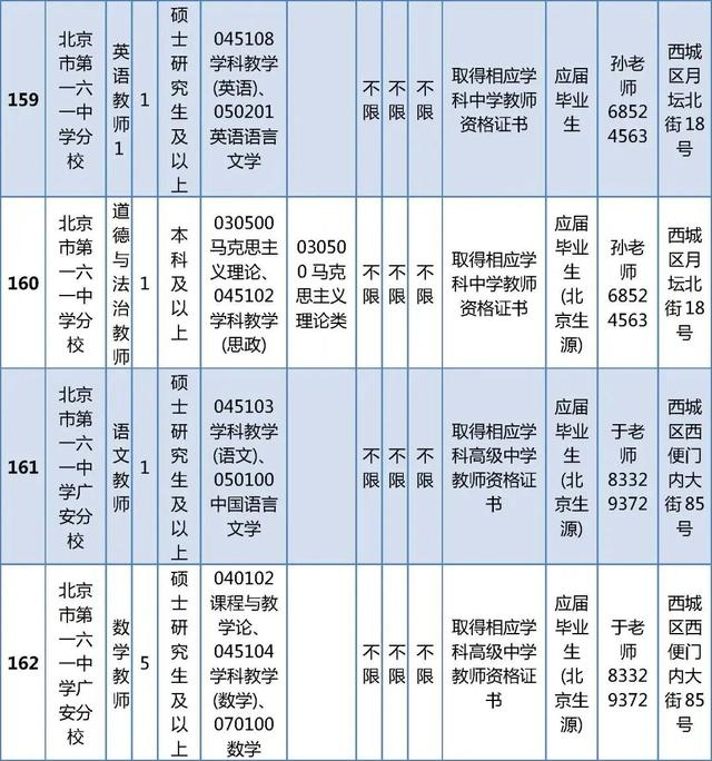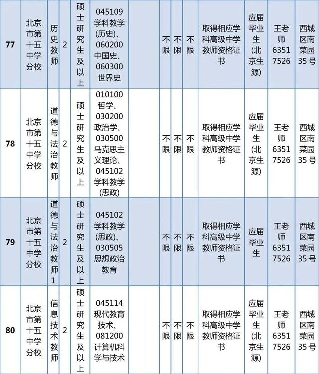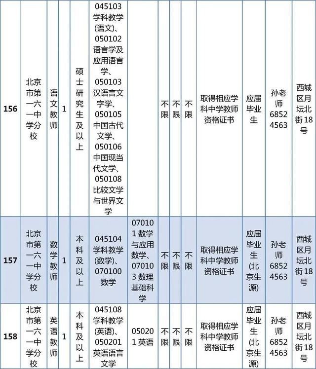 所有岗位具体报名条件详见《西城区教委所属事业单位公开招聘工作人员职位及要求表》(以下简称《职位及要求表》)。