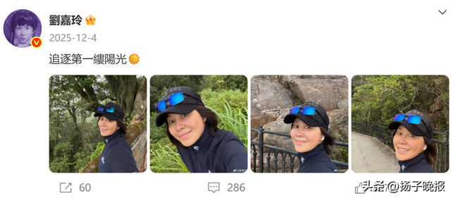 照片中刘嘉玲一身运动装扮,据了解,刘嘉玲有晨跑的习惯,经常在社交媒体晒出晨跑照片。