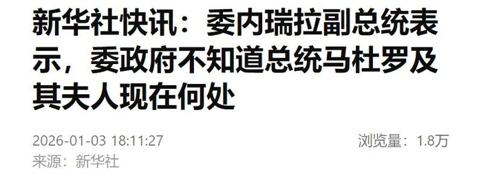 据新华社报导,美军已经抓获委内瑞拉总统马杜罗。