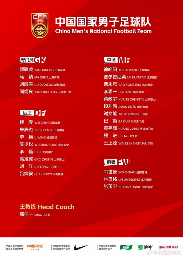 共有26名球员入选了本次集训名单,颜骏凌、张玉宁、韦世豪和王上源等老国脚依然在列,入籍球员塞尔吉尼奥同样入选。而新人只有4名,分别为李扬、闫炳良、马镇和吕焯毅。
