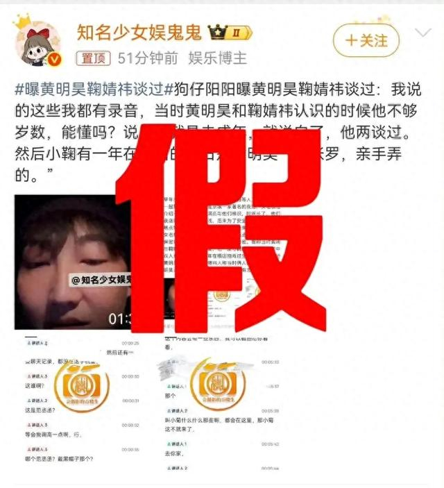 1月3日晚,@黄明昊信昊接收中 否认:"假!!!",鞠婧祎方对接也辟谣为"假"。双方都否认了恋情传闻。
