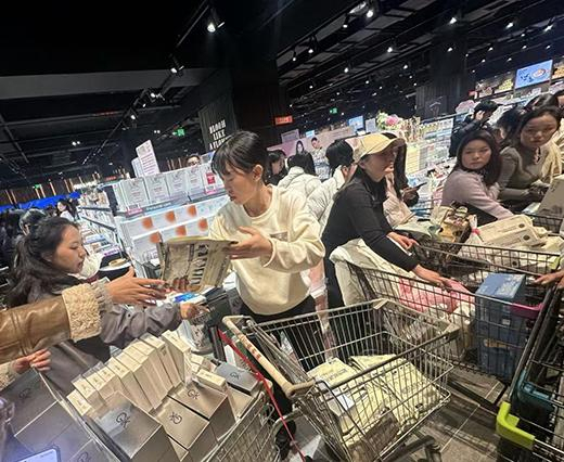 进入超市后,记者一行人被人群挤散。烘焙区域人气最旺,人挤人无法下脚,直到结账的时候大家才重新汇合。