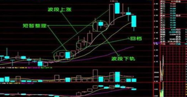 从下图中看波段中三个圈圈中小形态的末梢K线,靠近的五日均线,于是可以这么说,在上升波段中K线升得远了,就有向所属五日均线回笼的要求。概括的说,就是股价整理至五日均线。