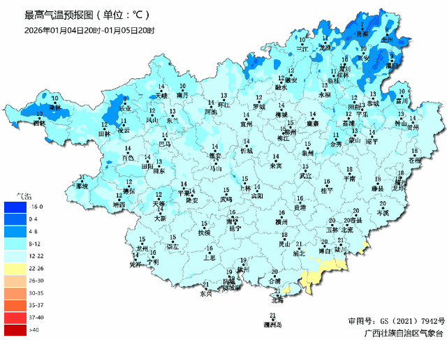 广西气象台1月4日17时发布预报: