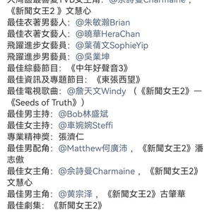 随着这场港剧年度盛典的奖项归属正式揭晓,《新闻女王2》成为最大赢家,包揽多项重磅奖项:不仅拿下大湾区最喜爱TVB剧集、最佳剧集,佘诗曼饰演的“文慧心”让她摘得大湾区最喜爱TVB女主角、最佳女主角,黄宗泽则凭借剧中“古肇华”一角获大湾区最喜爱TVB男主角、最佳男主角;此外,该剧刘艳拿下最佳女配角,詹天文演唱的《Seeds of Truth》获评最佳电视歌曲。